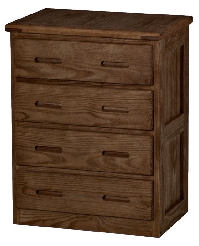 Drawer boxes feature dovetailed corner joints. Drawer bottoms are secured in a groove in the solid wood drawer box, so the bottom will never fall out of your CD Furniture drawer. Consider adding a lacquer finish to the top only, to increase moisture resistance and make cleaning easier.