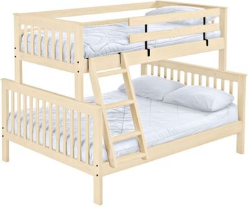 Mission bunk beds include a removable ladder. This version of the twin XL/queen bunk bed has the upper bed offset from the rear of the lower bed. This allows a front ladder to be safely added. A full length rear guardrail and a removable front guardrail are included.Read More