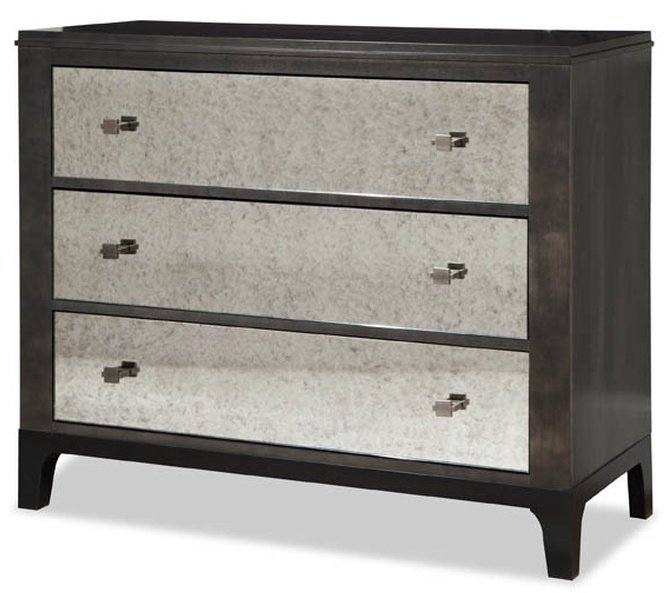 This bachelors chest is made in a contemporary style and features solid Maple wood in a Smoke finish with three mirrored drawers.