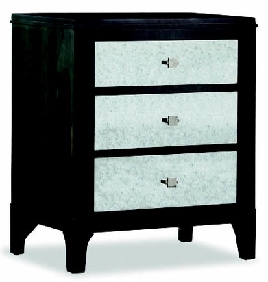 This nightstand is made in a contemporary style and features solid Maple wood in a Smoke finish with three mirrored drawers.