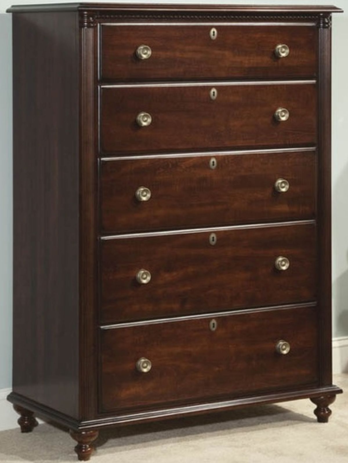 Savile row chest in victorian mahogany finish. Made of solid wormy maple wood.