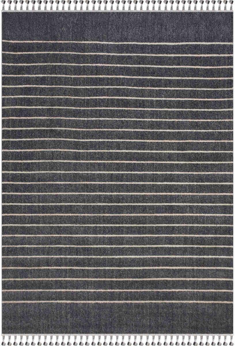 Nautical flair takes on a muted appeal within this rug design. The selection of sizes means this design can be at home in the grand beach house or cozy condo. The soft grey base acts as the optimal backdrop for dark captivating stripes to make their grand impression.Read More