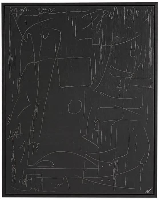 Japanese style abstract design takes on a sleek yet playful energy in this framed piece of canvas art. With the black backdrop offering a chalkboard-like presence, this canvas painting adds a unique touch to a gallery wall or sets the tone for a room when styled solo.Read More