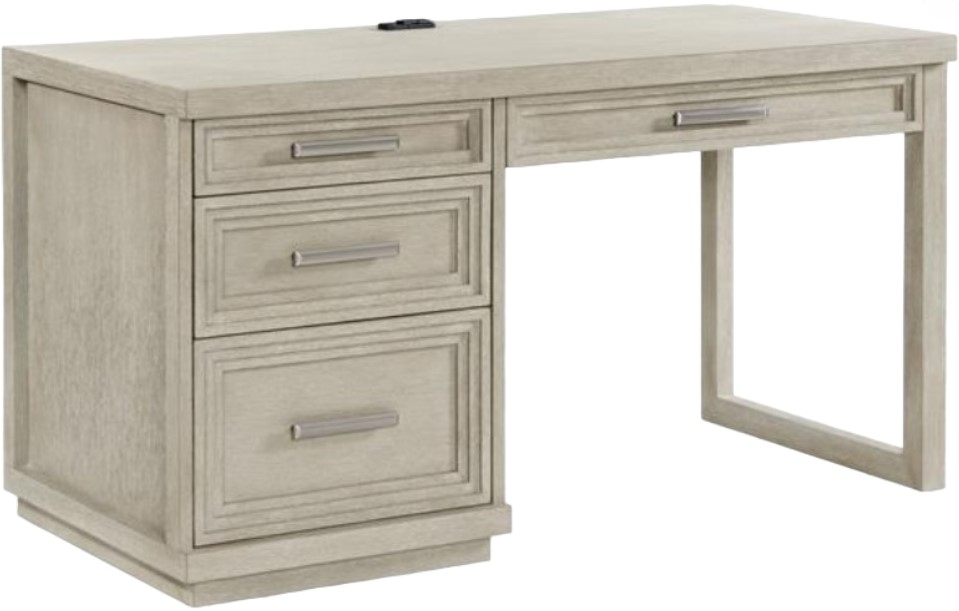 Featuring modern and contemporary design elements, the Riverside Furniture Cascade Single Pedestal Desk is constructed of hardwood solid and Cherry veneer with a Dovetail finish. Left side pedestal drawers are constructed with dovetail joinery and ball-bearing extension guides.Read More