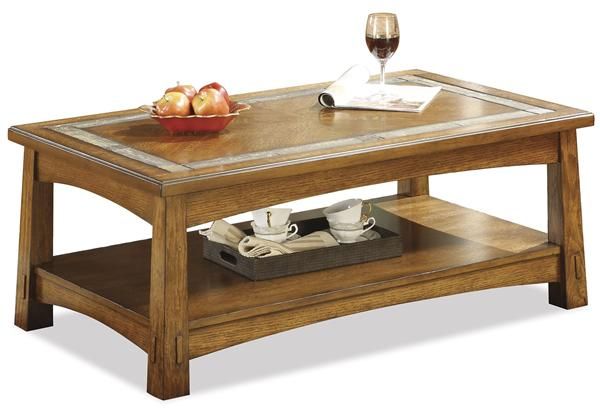 Constructed of hardwood solid and Oak veneer. Framed top features a slate tile border and a reverse diamond veneer panel insert. Fixed bottom shelf. Equipped with removable casters for convenient mobility.Read More