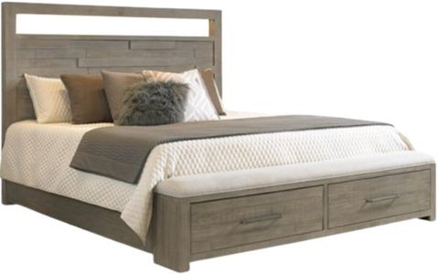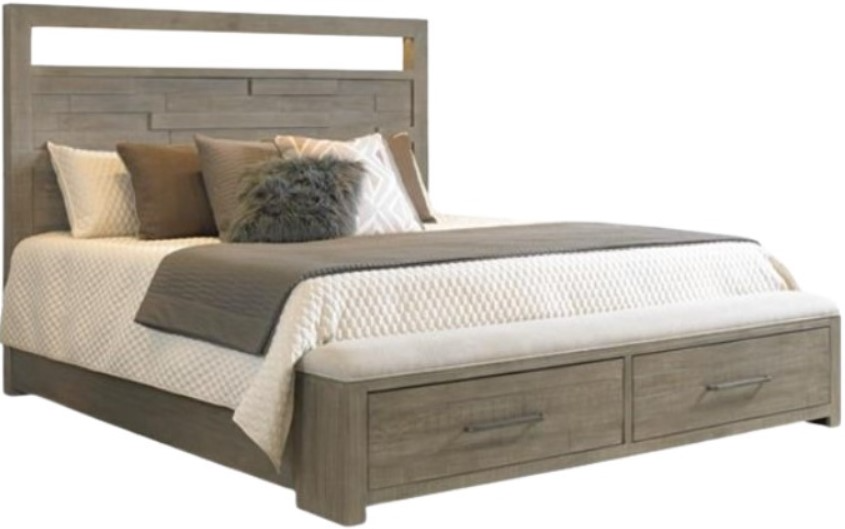 The Intrigue collection embodies rustic sophistication through it's tactile and organic styling. Select pieces feature a high-low planking effect for dimensional appeal, complemented by rustic distressing on solid pine. The hazelwood finish, blending taupe and gray earth tones, enhances the overall organic, textural allure.Read More