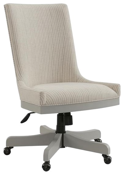 The Osborne collection presents sophistication and comfort with its upholstered desk chair. Crafted with meticulous attention to detail, this chair features a winter white finish that exudes elegance and modernity, adding a touch of refinement to any workspace or study. Its plush gray upholstery complements the serene white hue and offers a luxurious seating experience.Read More