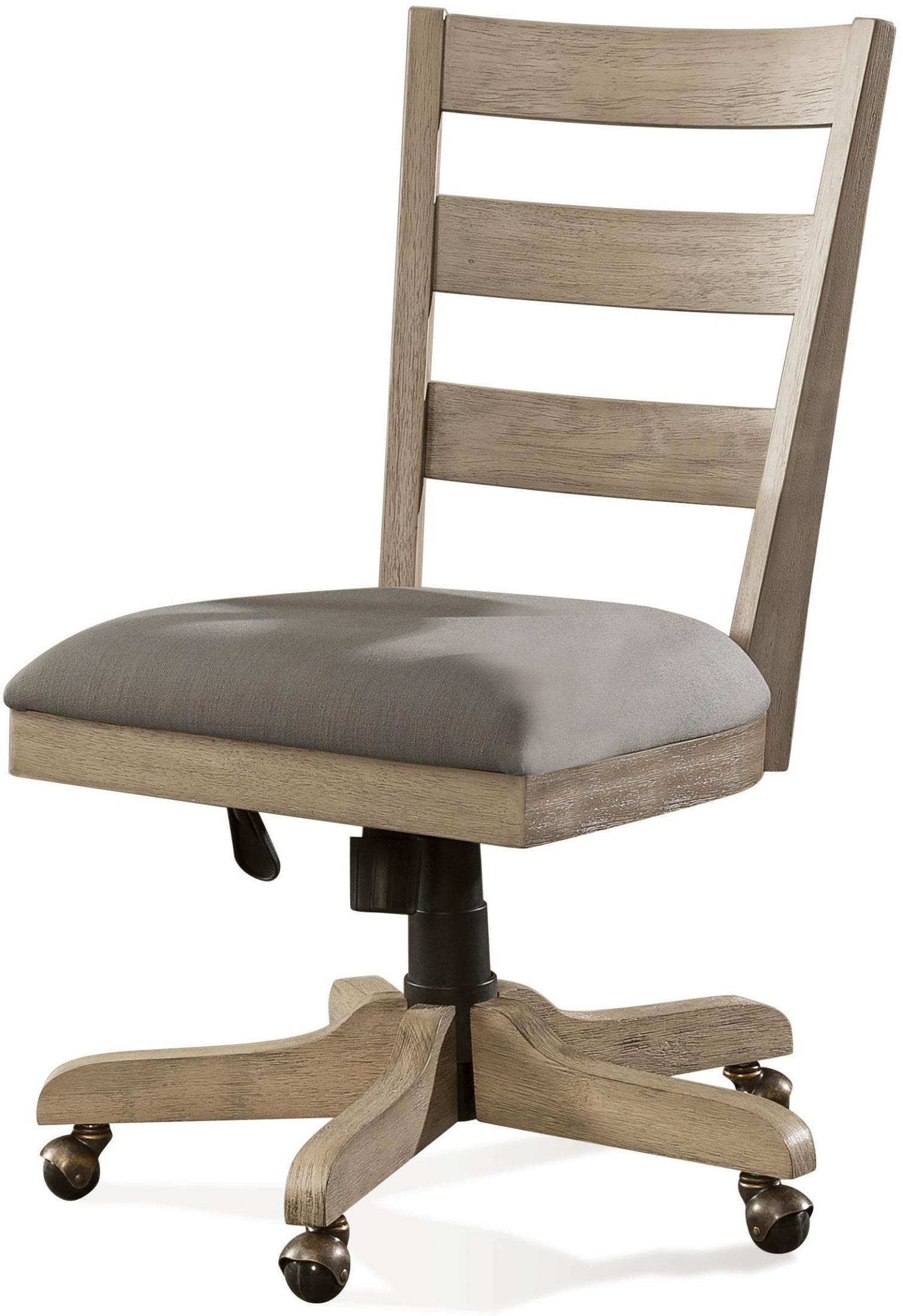 Constructed of hardwood solid. Gas lift height adjustment handle. Adjustable seat height from floor: 18" - 22". Swivel and five-prong tilt base with rocker tension adjustment knob.Read More