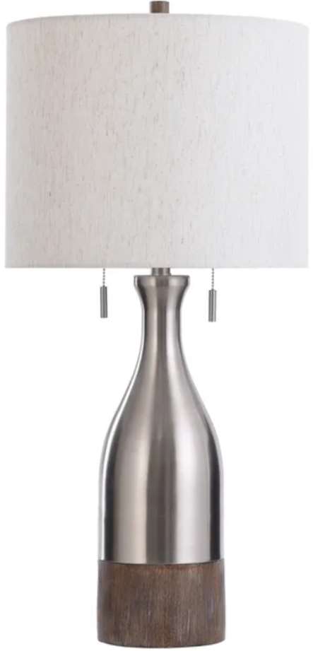 This table lamp from Stylecraft is shown in a Hitchin Silver body and Light Gray shade, it comes with the dimensions of 15" in width and 32" in height. Making it a great addition to any room or space.Read More