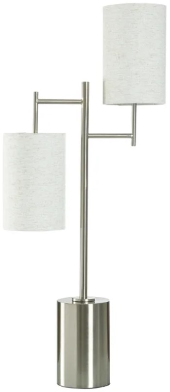 The Silver and White Steel Table Lamp combines simplicity with sophistication, offering a versatile lighting solution. Its sleek gray base seamlessly contrasts with a crisp white shade, creating a modern aesthetic. Crafted with durable materials, this lamp brings understated elegance to any space, providing both illumination and refined design.Read More