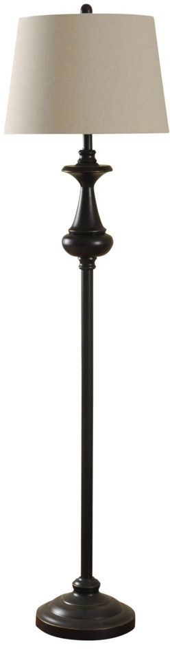 StyleCraft Traditional Bronze Metal Floor Lamp with linen drum shade and brown cordRead More